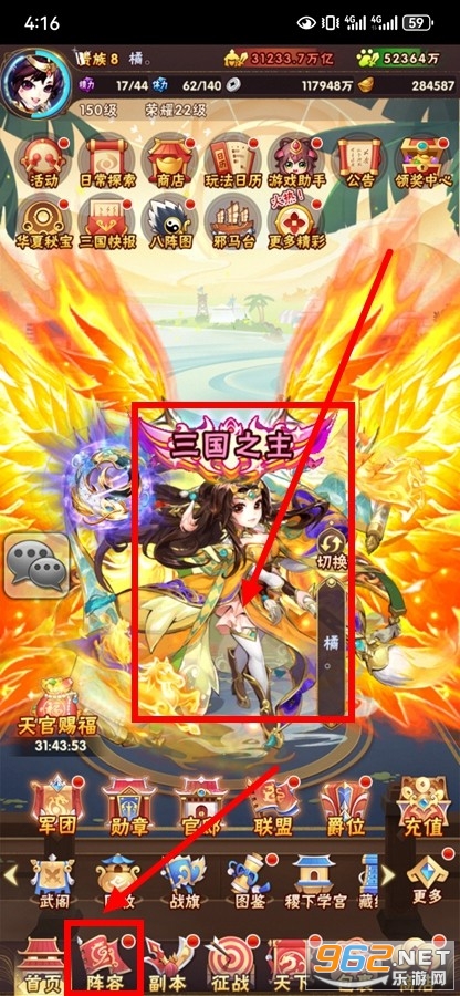 进入游戏主界面后, 点击 最下方的【阵容】或者点击角色,进入阵容界面