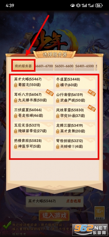 然后选择【我的服务器】就可以看到我们这个账号下玩过的所有服务器和角色了