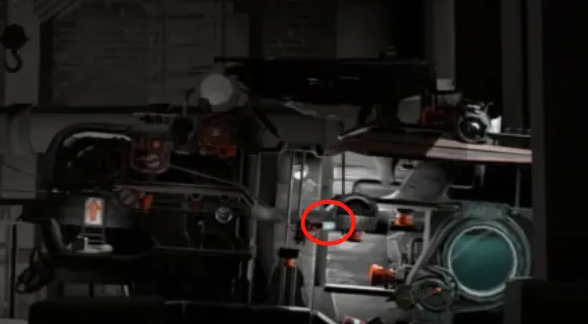 4、进入这辆车子后,我们需要在左边的升降梯上放上燃料,然后跳起来顶一下箭头所指的红色按钮,接着车子就会自动将燃料转换为能量了