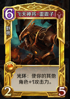 雷震子是目前火系唯一一张带光环的英雄角色牌,光环效果还是加攻,非常适合火系的战术体系。