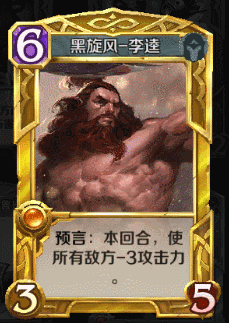 恕小歌直言,敌方全体降攻的预言效果实在不能更好用!每次李逵登场,敌方角色全体降攻,由气势汹汹变为任人宰割,返场就是一瞬间的事情,超级好用的中立卡牌哦~